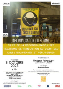 L’informalisation du formel : pilier de la reconfiguration des relations de production au cœur des mines boliviennes et péruviennes à l’heure de la transition énergétique Intervenant : Vincent Arpoulet