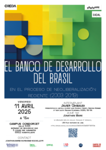 Le EADAL est constitué par des enseignants, des chercheurs et des étudiants qui travaillent sur des thématiques ayant trait aux problèmes du développement économique tout particulièrement de l’Amérique latine. Son objectif est de constituer une instance cherchant à articuler les activités d’enseignement et de recherche doctorale en économie à l’Université Sorbonne Nouvelle. La dynamique du séminaire est celle d’un atelier de recherche, qui se nourrit des thématiques apportées par les membres, et dans ce sens, la périodicité et son contenu seront déterminés par la propre dynamique du groupe. Principalement concentrées sur les pays émergents, les thématiques centrales de recherche couvrent plusieurs champs des sciences économiques. Le séminaire consacre une attention particulaire à l’Amérique latine tout en encourageant les approches comparatistes avec d’autres régions émergentes et en développement, notamment l’Afrique et l’Asie mais pas uniquement. Les questions économiques abordées peuvent être analysées à partir d’une multiplicité d’approches (études historiques, modèles théoriques formalisés, test économétriques…) et en interaction avec d’autres disciplines. Les échanges dans ce cadre de séminaire sont des moments fondamentaux pour la (et votre) recherche, dans lesquels naissent ou se confortent idées et projets. Il est donc important d’y participer et de profiter des moments informels avant et après pour échanger avec les autres participants du EADAL.