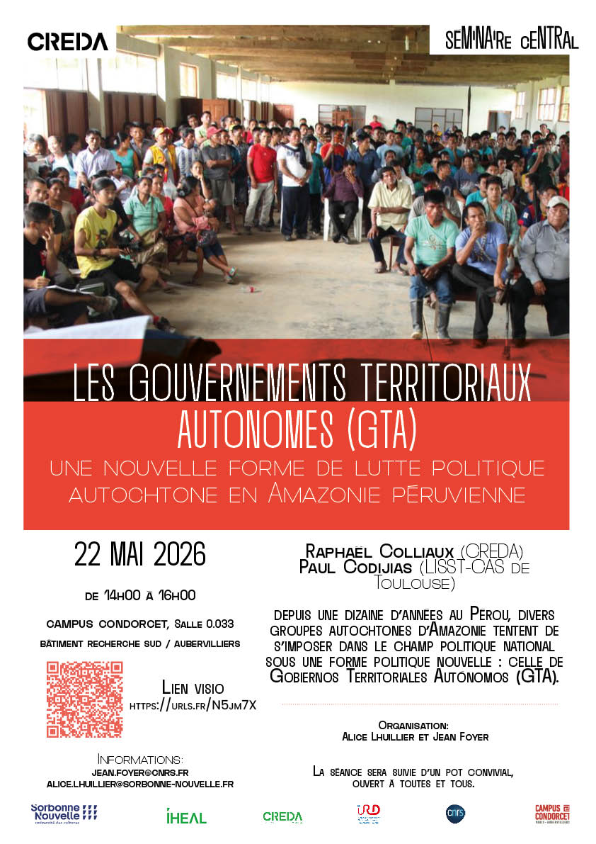 Le vendredi 17 avril 2026, de 15 h 30 à 17 h, le CREDA accueille la troisième séance du séminaire Siglo XX – Século XX. Nous aurons le plaisir d’écouter… Poursuivre la lecture Saisir l’ordinaire de l’avortement et de sa criminalisation au Chili : sources sous contrainte et fabrique du corpus