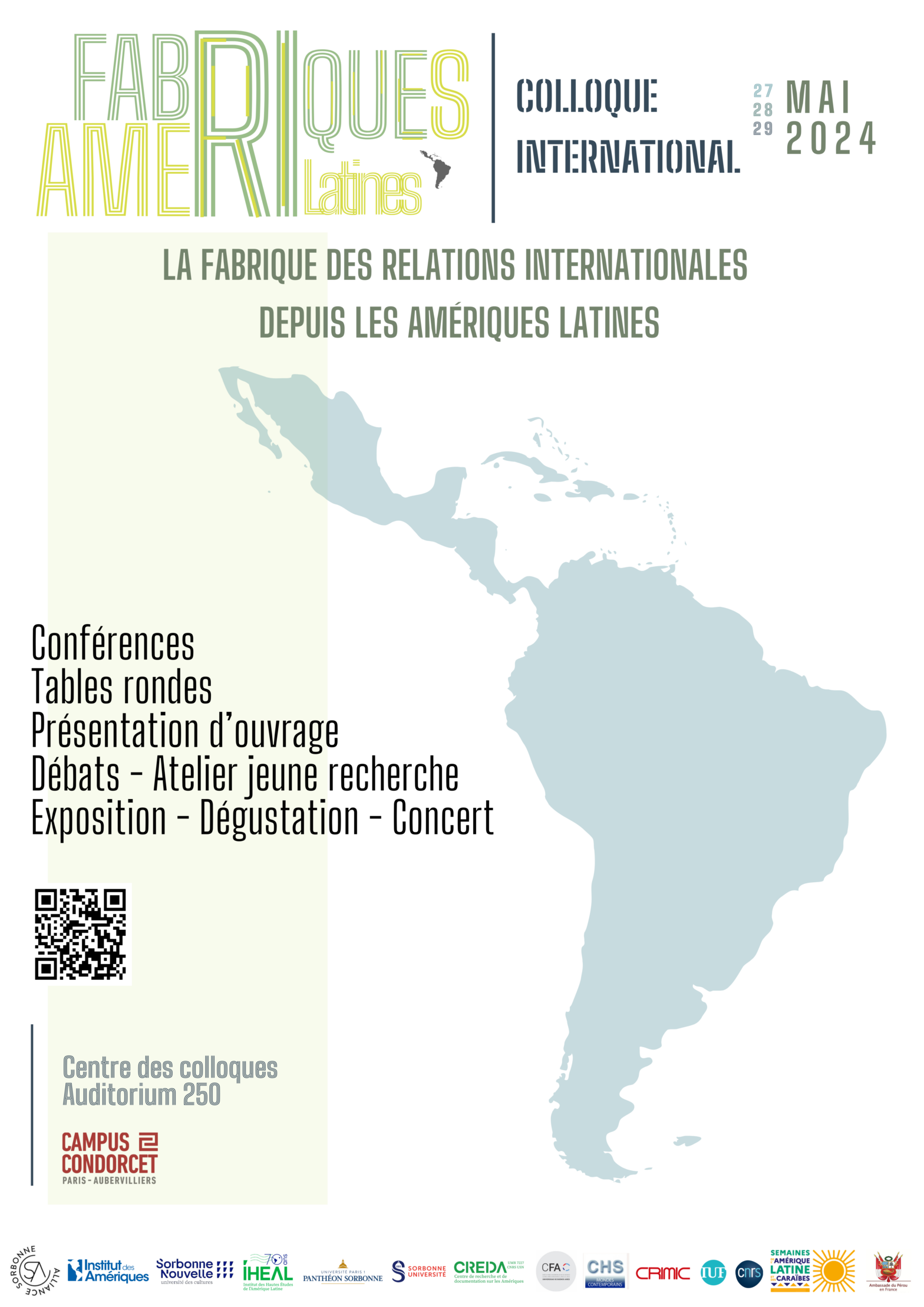 La fabrique des relations internationales depuis l’Amérique latine COLLOQUE INTERNATIONAL 27. 28. 29 MAI 2024 Ce colloque d’histoire des relations internationales, « La fabrique des relations internationales depuis l’Amérique latine« , est avant tout un espace de discussion et d’échange. Dans le but de promouvoir autant que possible les perspectives latino-américaines, en dialogue avec une approche globale des… Poursuivre la lecture La fabrique des relations internationales depuis l’Amérique latine