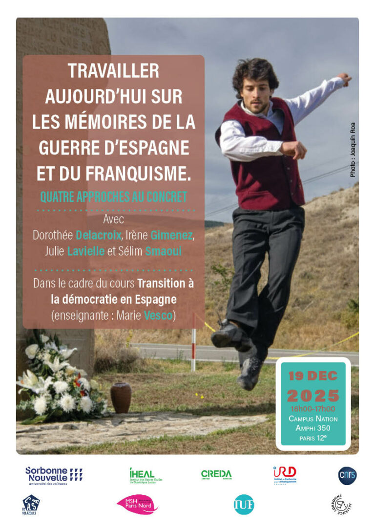 Date : 19 décembre 2025Horaire : 16h – 17hLieu : Campus Nation – Amphithéâtre 350 Intervenant·es Dorothée Delacroix Irène Gimenez Julie Lavielle Sélim Smaoui Cet échange s’inscrit dans le cadre