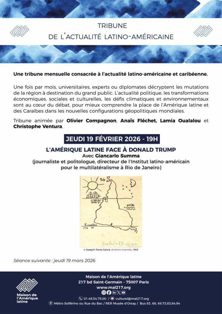 La prochaine Tribune de l’actualité latino-américaine et caribéenne s’intéressera aux réactions des gouvernements latino-américains après l’enlèvement de Maduro par les forces spéciales étasuniennes. Rendez-vous le jeudi 19 février 2026, dans