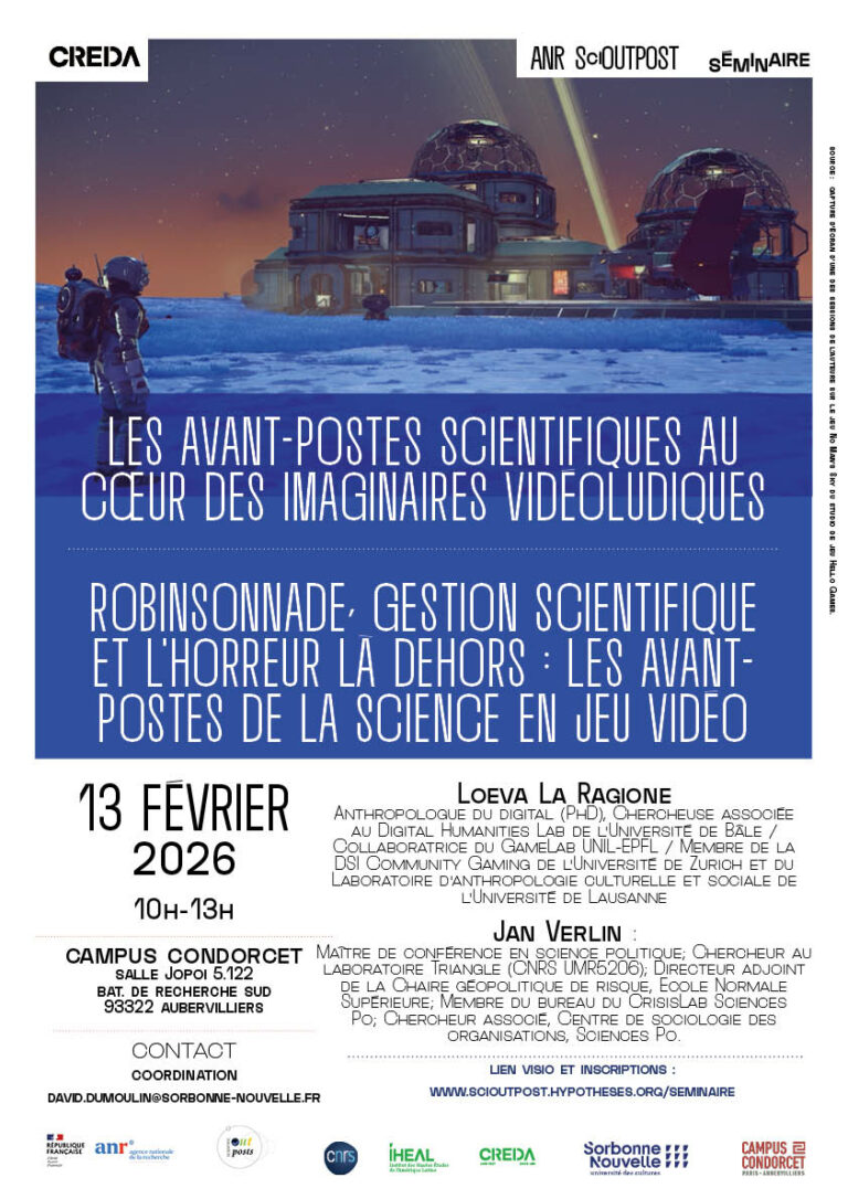 Les avant-postes scientifiques au cœur des imaginaires vidéoludiques Robinsonnade, gestion scientifique et l’horreur là-dehors : les avant-postes de la science en jeu vidéo Le projet ANR SciOutpost organise une séance
