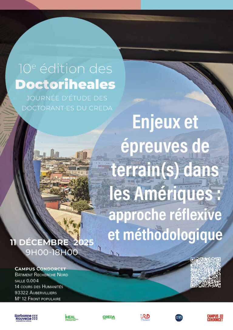 Les Doctoriheales sont les journées d’études des doctorant·e·s du CREDA (Centre de Recherche et de Documentation sur les Amériques).Elles s’inscrivent dans la démarche pluridisciplinaire portée par le projet d’enseignement de